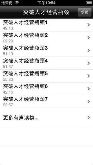 ====【余世维-突破人才经营瓶颈】==== 《余世维-突破人才经营瓶颈》全集,同时支持iphone和iphone5。 支持定时播放。 支持后台播放。 增加记忆功能,可以继续收听上次关闭时的记录。 ====【内容介绍】==== 1、“人才”与“人员”的主要分别在哪里? 2、在自己公司里培养一个人才,最快的方法是什么? 3、从外面挖掘一个人才,你要注意什么? 4、提拔一个“准人才”,高管应该协助他什么?防范他什么? 5、即使是人才,还是有等级与功能之分。你知不知道他的弱点与极限在哪里? 6、公司发展有不同的阶段,所以对人才也有不同的要求。你会不会区隔你的人才? 7、人才也有不像人才的时候,是因为什么? 8、为什么很多人人才留不住?是他的问题,还是你的问题? 9、你眼中的人才在全体员工眼中是不是人才? 10、为什么伟人用人考虑的第一标准都不是“聪明才智”? 11、你的亲朋好友或家人究竟是不是人才?