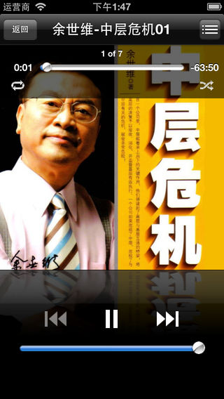 ====【余世维-中层危机-有声经典】==== 《余世维-中层危机-有声经典》全集,限价6元,同时支持iphone和ipad。 支持定时播放。 支持后台播放。 无任何广告插件。 增加记忆功能,可以继续收听上次关闭时的记录。 ====【内容介绍】==== 当人们习惯于将目光聚焦于企业高层时,却忽视了另一个重要群体——中层。事实上,中层的作用无可替代——他们既是企业决策的接收者,又是监督决策顺利实施的执行者。换句话说,没有中层,企业的任何英明决策都只是纸上谈兵! 中层发挥着怎样的作用? 如何从中层内部选拔人才? 如何培养中层? 在企业面临危机时,中层扮演着什么角色? 处于不同发展阶段的企业究竟需要怎样的中层? 余世维博士将为您揭开“中层”的重重迷雾。找到应对“中层危机”的金钥匙。