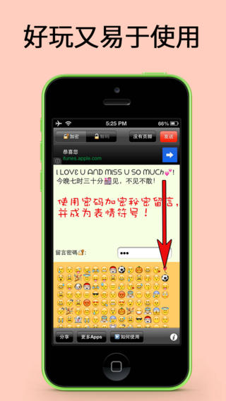 利用HideMessage 进行隐私聊天! 使用表情符号隐藏您的留言是保护您的留言的最佳方式! 秘密传讯从未如此有趣- 和丰富多彩! 特点 ► 利用 HideMessage 进行隐私聊天。 ► 使用直观的应用程序加密和解密讯息。 ► 设置密码的讯息:只有您的收件人才能解密密意! ► 这是非常有趣和易于使用的,并高度保密! ► 能使用Twitter,Facebook,微信和您最喜爱的应用程序进行隐私聊天! 我们都使用表情符号,但你知道它们也可以是另一个讯息的绝密代码?有了HideMessage,您可以在几秒钟内简单的写一个加密讯息并发送它。这个聪明和易于使用的应用程序会将它转换成表情符号。一旦您的的朋友或家人知道如何解码留言,他们可以很容易地使用留言密码和HideMessage应用程序将其解密。 这个有趣的,直观的应用程序是非常适合于使用在您告诉别人的闲话,重要新闻,故事,笑话或简单的东西,使用在任何你想成为绝密的讯息。所有你必须做的只是键入你的消息,设置一个密码和共享- 就像123一样简单! 秘密传讯从未如此有趣- 和丰富多彩! 你终于可以信心十足地确保窥探的眼睛将无法了解您的讯息聊天!他们不会意识到,有趣的表情符号实际上是绝密的讯息!