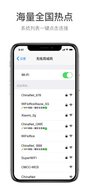 【我们的亮点】 亮点一:全新适配iOS11和iPhoneX; 亮点二:安全上网,365天WiFi管家全程护航; 特点三:专属内容,个性推荐每日资讯。 【产品简介】 WiFi钥匙上线于2012年,致力于为用户提供更好的上网服务,最大限度保护用户上网安全。WiFi钥匙致力为用户提供更加安全的上网环境,接入中科院旗下资金投资,在安全防控体系,保护用户的信息方面更是国内领先,是iPhone手机用户安全连接WiFi的首选神器。 同时我们不断适配iOS系统更新,从iOS8截图扫描,iOS9系统列表扫描,iOS11全新适配,我们一直不断地技术创新,为用户提供最优的体验。