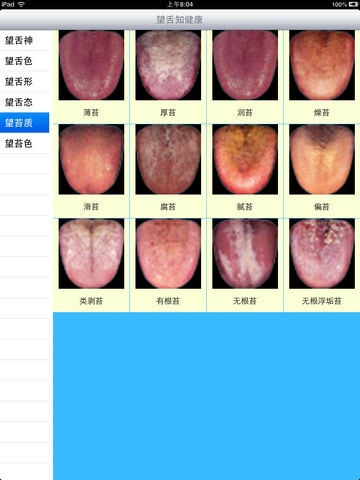 望舌知健康 舌诊,诊断学名词。为望诊重点内容之一。中医诊断疾病的重要客观指标。 舌为心之苗,脾之外候,苔由胃气所生。脏腑通过经脉与舌相联系,手少阴之别系舌本,足少阴之脉挟舌本,足厥阴之脉络舌本,足太阴之脉连舌本,散舌下,故脏腑病变,可在舌质和舌苔上反映出来,舌诊主要诊察舌质和舌苔的形态、色泽、润燥等,以此判断疾病的性质、病势的浅深、气血的盛衰、津液的盈亏及脏腑的虚实等。 望舌知健康主要包括望舌神、望舌色、望舌形、望舌态、望苔质、望苔色六大部分内容。 中医传统诊法认为,舌质与舌苔在反映病症方面各有侧重,一般来说,舌质多反映五脏精气的盛衰;舌苔多反映病邪的性质及病位的深浅。这是因为舌质的色泽形态主要是依靠五脏所化生的精气上容以维持,故五脏精气的盛衰也就主要表现在舌质上;舌苔由胃气上蒸而成,若体内有邪气,常与胃气相传结上蒸于舌面,表现为舌苔的异常,故舌苔更侧重于反映病邪的情况。由于中医发病学理论更重正气的盛衰,故相比较而言,中医望舌更重舌质的变化。对此,清代医家周学海在《形色外诊简摩》一书中明确指出:“苔无论何色,皆属易治,舌质即变,即当察其色之死活。”《诊家直觉》一书也有类似的论述:“凡察舌需分舌苔、舌质,舌苔虽恶,舌质如常,胃气秽浊而已。”当然,舌质与舌苔的变化并不是彼此孤立的,而是紧密联系的,故临证还要将它们的变化综合起来进行分析研究。 用视觉观察病人的舌质和舌苔的变化,以了解病情,推测预后的诊断方法。观察舌头的色泽、形态的变化来辅助诊断及鉴别的一个简单有效的方法。