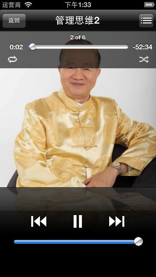====【曾仕强-管理思维】==== 《曾仕强-管理思维》全集,限价6元,同时支持iphone和ipad。 支持定时播放。 支持后台播放。 增加记忆功能,可以继续收听上次关闭时的记录。 ====【内容介绍】==== 管理思维决定管理成效。中、美、日三种不同的管理思维正在我们的管理界交错运用,但由于大家对这三种不同的思维方式各自的特性、优点与缺失缺乏深入的了解,往往造成思维的混乱与组织内部的纷争,以致大大影响了管理的成效。 上篇详细介绍了甲乙式、AB式与大和式三种不同的管理思维,帮助大家理清思维层面的混乱;下篇则深刻剖析了中国人的习性,说明中国人的甲乙式管理思维的实际应用及其变化,以“把二看成三”为主轴,指出它的妙用、变形、拿捏和平衡,帮助大家建立清晰的、适合中国人心性与文化的管理思维模式,以达到提升个人管理水平与组织管理成效的目的。 本书视角独特,思路缜密,深入浅出,妙语叠出,如与大师当面晤谈,不失为一席智慧的盛宴。 ====【专辑目录】==== 第一章 东西文化的根本差异 第二章 “二构成一”的特性 第三章 “二构成一”的优点 第四章 “二构成一”的缺失 第五章 “一内涵二”的特性 第六章 “一内涵二”的优点 第七章 “一内涵二”的缺失 第八章 都可能变成“一统全局” 第九章 “一统全局”的特性 第十章 “一统全局”的优点 第十一章 “一统全局”的缺失 第十二章 纷乱的根源 第十三章 中国人的基本精神 第十四章 中国人的基本信条 第十五章 中国人的基本立场 第十六章 中国人的矛盾心态 第十七章 中国人的心灵状态 第十八章 中国人的衡量标准 第十九章 中国人的判断标准 第二十章 中国人的基本态度 第二十一章 中国人的复合标准 第二十二章 中国人的必要修养 第二十三章 现代中国人的共同问题 第二十四章 现代中国人应有的素养