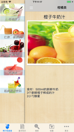 当代人的生活节奏越来越快,工作的压力也越来越大,很少有人能够把很多的时间花在酒楼食肆,更多的人越来越注重和依赖家庭饮食。于是,各种小巧便捷的小家电厨具快速走进了每个家庭。但是,吃什么怎么做的问题也随之成为困惑。精选130道榨汁机美食,分为柑橘类、核果类 、浆果类、瓜果类、经典果汁饮料。每天一杯健康蔬果汁,增强体质,消除疲劳、预防高血压、糖尿病、高血脂;改善肠胃和肝脏疾病、治疗女性疾病、远离癌症! 无广告,浏览速度快,不耗流量,离线本地浏览,不用上网也可以使用。