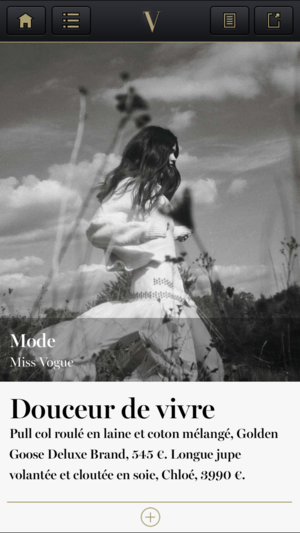 Retrouvez chaque mois Vogue Paris sur iPhone, la mode en effervescence, le style comme nul part ailleurs, la beauté et ses secrets, la culture et ses temps forts. Abonnez-vous directement depuis l’application : Deux formules d’abonnement vous sont proposées ainsi que les numéros individuels compren…
