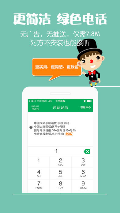[免费、低价]:手机话费几乎全省,煲电话粥必备 [品质、服务]:专业打造,音质优良,让您用的舒心 “比低价格,比高服务”,有话通是一款绿色、稳定、音质优良的网络电话,以极低的话费,拨打全球任意手机和固话,是华人网络电话领先品牌。 ◆ 选择有话通的理由 ◆ ①赠送:注册送5-20分钟话费,认证送120分钟话费 ②特惠:充值天天特惠,话费极低 ③绿色:无广告,无需手机号注册,WiFi下0流量费 ④去显:支持主叫号码显示,并且可以自由开/关 ⑤专业:10年只做网络电话,全球5000万满意用户 ⑥服务:小秘书MM多渠道提供服务:热线、QQ、在线反馈 小秘书热线:5007(使用本软件免费拨打) 小秘书QQ:82013001