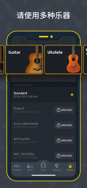 DoubleTune是由专业音乐家创建的高级调音应用程序。它适合一系列弦乐器的调音,学习新的和弦,并唤起您已经学会的和弦的记忆。竞赛式教育游戏对初学者和熟练的吉他手同样有用。不管怎样,DoubleTune对于任何音乐家都是一个必需的应用。 本应用由经验丰富的吉他手制作,简单、快捷、直观并且准确。对于原声吉他、电吉他和低音吉他,还有尤克里里、班卓琴、小提琴和大提琴的调音来说都是完美的。 在一系列调音预设和模式之间进行选择: - Tune Guard™; - 标准和流行调音( 6 和 12 弦) - Drop和Double Drop; - 开放,模态和较低; - 尤克里里调音; - 低音吉他调…
