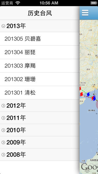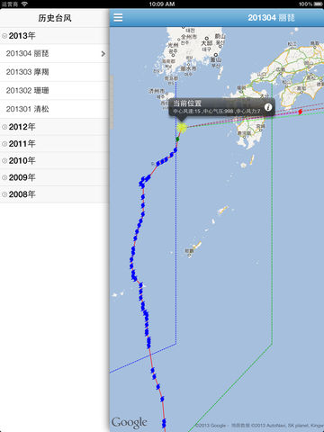 这是一款可以查看实时台风的信息,查看台风的实时路径和预报路径; 还可以查看近几年的所有的台风的路径和信息。