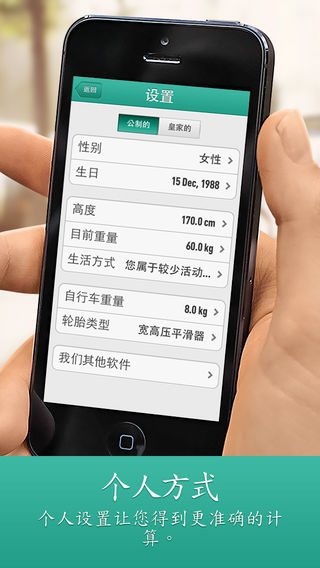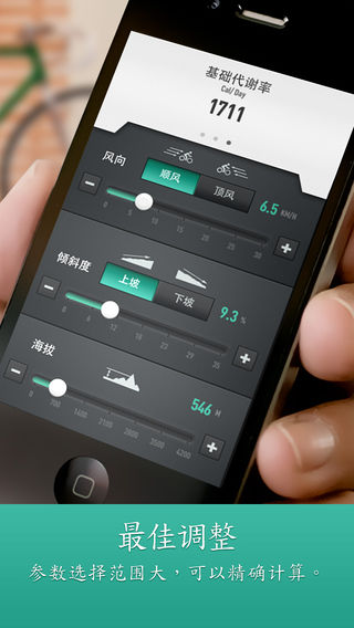 单车计算器对所有级别的车手来说都是必备的计算器。 单车计算器帮您计算速度、功率、时间、距离、体能等等。它要运用许多数据,车手在车上的位置、顺风/顶风方向的速度、倾斜度、车手体重、车重、轮胎类型、海拔、温度等等。单车计算器还能计算您的基础代谢率、体重指数和体能体重比。 您曾经有没有想知道您在风速4.1英里时以时速15.3英里的速度顶风前进32分钟会燃烧您多少卡路里的能量?在海拔620英尺且温度56F的室外,您以3.2%的倾斜度爬坡,此时又会消耗您多少能量? 又或者,如果您在360瓦的输出率,身处车篷,顶风时速2.1英里,倾斜度0.5%的情况下上坡前进55分钟,您又能骑多远,速度会是多少呢? 又或者您在爬坡倾斜度为8.9%,顶风时速2.8英里的情况下,保持时速8英里,这时您的单车需要多少功率呢?如果您前进31分钟,您能骑多远呢? 单车计算器能给您所有的答案! 公制的且US单位。
