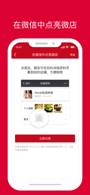 手机开店用微店,1分钟开店,便捷管理,支付快捷,多重认证,开店无忧,是逾7000万开店店主的共同选择 【1分钟开店,轻松管理】 1分钟简单操作,快速开启掌上店铺; 仅需一部手机,即可随时随地轻松管理订单。 【0手续费,支付便捷】 所有交易(除信用卡外)不收取任何费用; 支持微信/支付宝/信用卡/储蓄卡多种支付方式。 【多种营销工具,多重渠道】 多重营销工具、经典社交营销玩法案例,玩法多多; 小程序、公众号联盟,渠道无处不在,帮你高效获客。 【多组织/多重认证,保驾护航】 社区、组织、商学院、同盟会,帮你解决开店难题; 认证体系完善,确保店铺安全,为你的交易保驾护航。