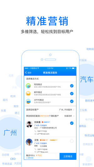 人脉通4.0为您提供更广度的人脉网络,更深度的行业资讯。 最新录入5月份行业展会155场,6月份107场,7月份34场 SUPER WINE 2018第十九届上海国际葡萄酒及烈酒展览会(5月14日) 2018上海大虹桥美博会(原广东国际美博会)(5月19日) DMC2018第十八届中国国际模具技术和设备展览会(6月5日) 2018上海紧固件专业展暨第九届上海汽车紧固件展(6月20日) 2018第18届上海CBME孕婴童展 上海CBME童装展(7月25日) … 人脉通助你拓展行业人脉,高效做成买卖。 致力于成为您的全方位生意助手。 1.拓展优质人脉 结交服装,纺织,汽配,美妆日化,农产品…