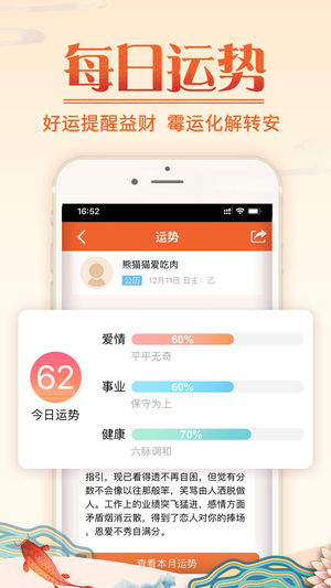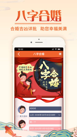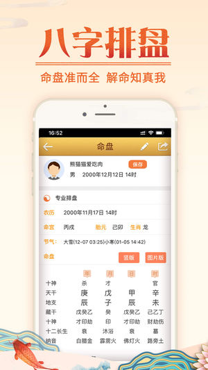 【易奇八字】——您信赖的运程顾问! 了解自己,了解运势走向,易奇八字让你知命改运,在事业财运更上一层楼,爱情婚姻更美满。 通过生辰八字组合出你的先天的命局,详细的命盘解说,配合阴阳五行,精准分析你的未来发展趋势,让你把握大运之年,提升事业、爱情、财运等运势。 【应用描述】 * 独家:易学名家与您交流互动,解惑生活运势。 * 专业:参考价值、准确度完全媲美资深易学大师。 * 特色:图文交互模拟情景,轻松看懂千年易经文化。 * 亮点:命理运势全面深度分析,内容丰富,通俗易懂。 * 优势:20年行业领导品牌,超2亿用户体验的满意鉴定。 【应用特色】 1、易问专家:与资深周易命理算命大师沟通,为你…