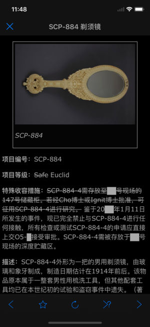 SCP Foundation DB nn5n - SCP基金会是一个有关于各种超自然现象、个体、地点等等的系列作品。这个App为非官方的SCP基金会离线数据库,让你可以不用联网就能阅读其中的内容。 特点: - 3种语言:中文,英文,日文; - 菜单中包含“上一条”,“随机物品”, “下一条” 等按钮; - 正常/夜间两种阅读模式; - 可以收藏自己喜欢的物品; - 超过3000页的可阅读物品; - 3D Touch; 当你点击“随机物品”按钮的时候,你将打开一个随机的SCP物品页面. 注意 ! SCP基金会只是集体创作的小说!并不是真实存在的。但如果你是个胆小的人请不要安装此App以及不…