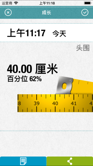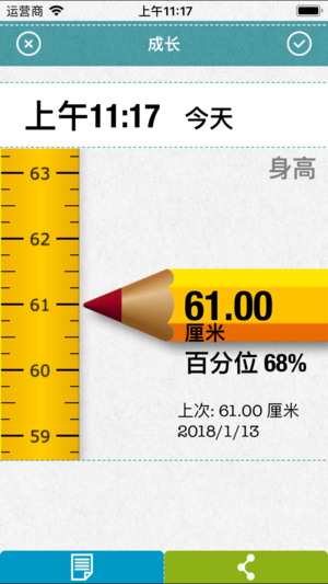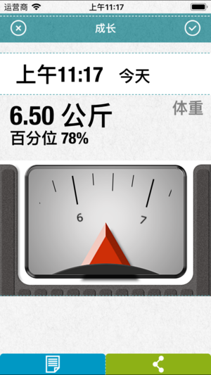 简介 想了解宝宝的生长发育状况吗? 和同龄小朋友相比成长状况如何? 宝宝成长速记能提供方便快速的帮助。 特点 1 快速记录宝宝的身高、体重和头围数据; 2 方便、直观地查看宝宝的历史记录; 3 提供即时的基于世界卫生组织(WHO)的婴幼儿成长曲线百分位图作为您宝宝生长发育的参考; * 该比较数据年龄段为0-5岁 4 支持分别记录多个宝宝的数据; 5 支持将数据导出为CSV格式文件; 6 支持数据打印,包括成长图表; 7 支持将数据转为PDF格式并通过e-mail发送给亲朋好友。