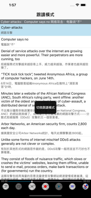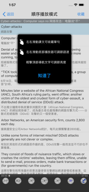 强大的播放模式,便捷的触控体验!支持单句收藏,跟读录音,内置全文有声字典,即点即查,因此体积较大,请务必在WIFI环境下下载,以免过多消费流量。下载完毕,即可离线使用! 软件支持iPhone、iPod touch、iPad等各版本的硬件设备并针对高清显示屏做了专门优化。 ***软件特色*** 1、资料丰富 2、纯正英国口音:不需要再纠结口音问题,迅速掌握英式英语的发音技巧 3、多种播放模式选择:单句循环、单课循环、课程连播、对比播放、是否显示中文译文播放等等,适合各种学习模式,能帮你迅速提升英文听力能力 4、强大的口语练习模式:每一句都可跟读,反复对比或者循环播放口语发音…