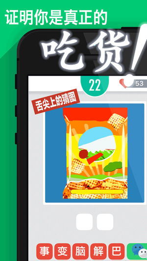 过瘾 !好玩 !可爱!疯狂猜零食! 是时候证明你是真正的吃货了,一百关的美食猜图在等着你! √ 直接,方便 等车无聊?吃饭没事儿干?几分钟的时间已经足够让你玩个爽! √ 精美,亲切的图片 美食的图片吸引着你的眼球,也吸引着你的舌头 √ 跟朋友一起玩 碰到不懂的,你可以在游戏里分享到微信问朋友