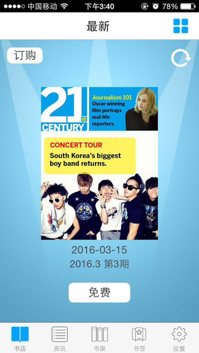 “21世纪英文报”是《21世纪英文报》推出的基于iPhone和安卓手机的英语学习APP。在纸媒内容的基础上,“21世纪英文报”针对手机终端特征及用户使用习惯增添了高清美图、音/视频等多媒体形式,更增加了双语新闻、口语、演讲、翻译、听力等纸媒之外的大量英语学习类内容。全新的视觉设计、丰富的交互体验为你开启时尚的英语学习之旅!此外,APP中还设有分享按钮,方便用户在新浪微博等社交媒体平台一键分享自己的阅读内容。新品上线,目前所有报刊限时免费中! 关于《21世纪英文报》: 1993年5月,《21世纪英文报》由中国日报社在北京创刊。历经多年磨练,二十一世纪英语教育传媒系列报刊以介绍国际时事文化知识、指导英语学习为宗旨,已成为国内发行量最大、覆盖面最广的全国性英语学习时事周报。自创立之初,《21世纪英文报》即以培养读者国际视野、提高读者英语能力为己任,广泛报道青年关注的国内外大事和身边时事,引导其关注世界发展趋势;同时结合可读性强、原汁原味的英语新闻进行适量的英语辅导,培养读者的英语综合能力,并主办了英语教育网站“21英语网”(www.i21st.cn),同时推出了平板电脑客户端和手机客户端。