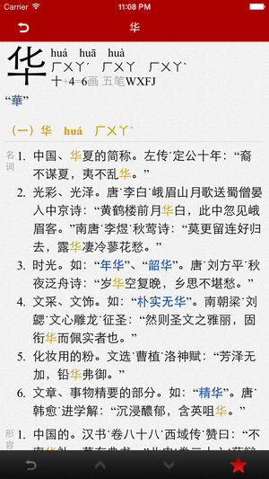 汉语字典词典简体版,华人必备学习工具! + 收录 Unicode 编码集所含的 20902 个汉字。 + 收录汉语词条 6 万多笔。 + 释义详细清除,大部分有文言文例证。 + 支持汉字搜索方式,支持部首、注音、拼音检索方式。 + 按照汉字的读音(语音)、词性分级列出释义,层次分明,方便查阅。 + 每个字条字包含注音、拼音、笔画数、部外笔画、释义、五笔码等信息。 + 主条目根据发音的声调显示不同的颜色,方便区分。 + 提供「历史记录」和「收藏夹」功能。 + 可以离线使用,无需担心流量透支。 Chinese Dictionary, it is an essential learning to…
