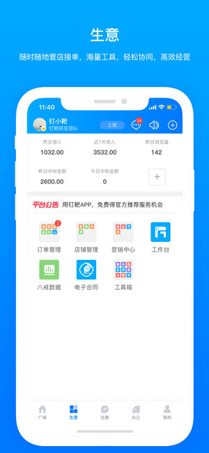钉耙App是猪八戒网为全球知识工作者打造的一站式工作平台,涵盖在线数字化经营,办公场地,社群互动,培训学习等领域的产品与服务。助力全球知识工作者突破时空界限,连接新世界,一地办公,全球服务! 【便捷功能】 广场:实时接收经营动态、行业资讯、打开视野,拓展人脉 生意:随时随地管店接单,海量工具,轻松协同,高效经营 社群:玩转圈子讨论话题,培训学习,线下活动,应有尽有 社区:乐在工作,乐享生活!全国29个城市36个社区任您选 【关于猪八戒网】 猪八戒网于2006年创建,已发展成为全球领先的知识工作者共享平台, 通过构建知识工作者的O2O大社区,让具有特色技能专长的知识工作者,创业者,自由职业工…