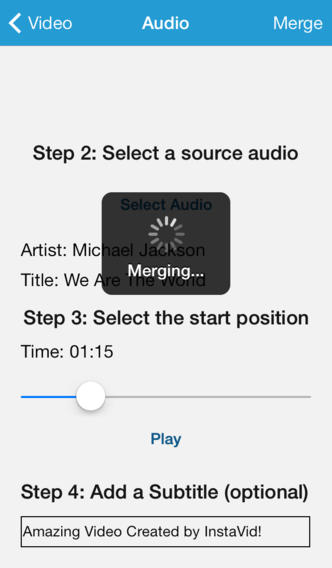 使用该应用能够非常方便地给你的视频添加背景音乐和字幕。 该应用会把视频,音乐和字幕合并在一起,你可以保存到系统相册,分享到Instagram,优酷,土豆等视频网站。 主要功能有: - 从系统相册里选择视频 - 选择音乐,调整音乐的开始位置 - 预览合并后的视频 - 无损合并,100%保持视频原来的清晰度和比例 - 支持无损视频的裁减 - 支持添加字幕 - 简洁实用,方便快捷 联系我们: Email: easylabs@qq.com