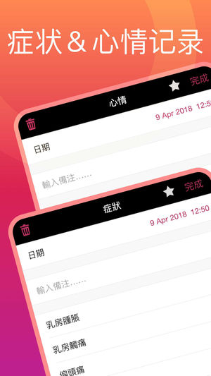 记录您的经期,预知您的排卵期,记录日记,以及更多精彩功能!Life还可以记录不规则的经期,并有密码保护功能! ################################ 创新的日历 Life独家享有创新的数据输入方式,重要的经期日期输入操作极为快速、轻松、高效。 经期记录 我们希望提供一个简洁而又美观的经期记录界面,一个一目了然但又极具个性的页面。 排卵预测 使用我们的排卵日历可以快速轻松查看您的排卵日期预测。信息杂乱的日子已一去不复返。通过精美的界面查看您的排卵日期预测。 心情记录 Life提供了创新的多项心情记录功能,您现在可以自由地分次记录各种心情,随时…