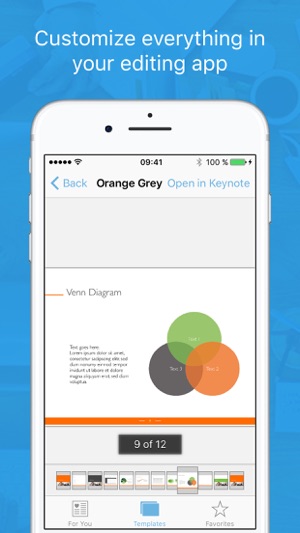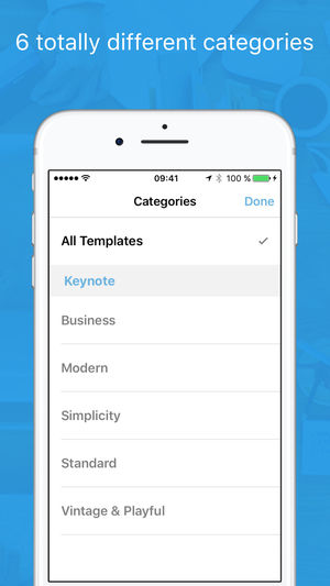 Keynote模板(专业版)是迄今为止最全面、最精美的模板集。专为iOS 10设计和策划,拥有5大类600多张幻灯片,Keynote模板(专业版)是掌控你的下一个Keynote演示的最佳方式。 省时又省钱 本应用程序设计得简单易用。先找到合适的风格,导出到Keynote应用程序,然后插入你的内容即可。 无限的可能性 六个不同的类别,从简单到复杂,从别致到实用,让你自由地表达。熟悉之后,创意没有边界。 专门为KEYNOTE设计 Keynote是iPhone、iPad以及iPod touch上最棒的编辑一流幻灯片的工具,它有自定义图形、美仑美奂的动画以及眩人的特效。与Ke…