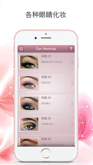 很多各种化妆一步一步的技术!为了学更多的化妆风格和技术下载“眼睛化妆”软件。 -各种各样眼睛化妆,带照片和一步一步的描述。 -软件包括日妆,给棕色,绿色,蓝色和其他颜色眼睛的晚壮 -可以跟朋友分享 -高清晰度照片和描述 -把软件下载到iPhone就可以免费下载到iPad, 也能反过来。 下载软件你就一直很漂亮! -要美丽! -化妆一步一步培训! -各种眼睛化妆