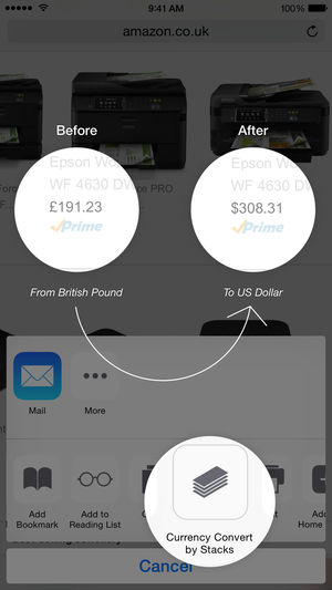 Stacks is the only app in the AppStore that lets you convert currencies right in your safari browser. Stacks automatically convert prices in a webpage to your desired currency. It also comes with two today widgets - Quick Converter and Denomination, so your currency conversion is always just a swipe…
