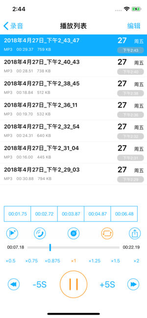 录音从未如此简单! 功能: 自定义格式,播放列表,废纸篓,波形图 & 标记。