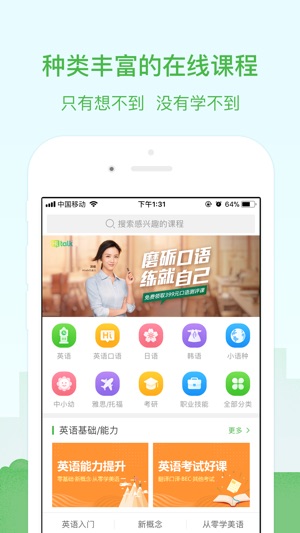 沪江17周年,见证成长,和每个努力上进的你,永远在一起。 沪江网校是沪江网倾力打造的在线教育平台。学员不仅能获得外语、中小学、职场、兴趣方面的培训,更能即时分享知识、收获学习伙伴。丰富的课程体系、学习性社交校园、权威的外语教学、先进的独创课件、专业的课程答疑,让您体验前所未有的在线教育魅力!我们一直在不断突破,力求打破传统,颠覆你的学习想象,创造全新学习体验! 【内容介绍】 1、权威课程体系:涵盖英语、日语、法语、韩语、西班牙语、德语等12种外语及广东、上海话等方言培训; 更有全面的中小学教育、职场培训、兴趣培训等素养课程,300余门课程任你学; 2、专业学习系统:通过每日任务化的学习系统…
