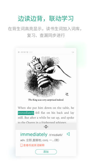 你也许学了十几年英语;你也许背过几千个单词;你也许还买了好几本英语原著; ....... 可是,你真的有完整的看完过一本英文书么? 扇贝读书不是普通的阅读软件,我们并不希望你从这里买很多书,而是希望你坚持读完至少一本。我们尽一切可能帮助你从第一页开始,到最后一页结束。 你也许从未想过一款阅读软件也会有如此强大的学习功能: 1. 阅读过程中的每个生词都可以即时添加到自己的学习计划中,利用扇贝强大的记忆系统进行学习。 2. 每篇文章,都会高亮你在扇贝网上学过的单词,让你感受到不断增长的词汇量有用武之地; 3. 如果你正在准备某项考试,不论是四六级,考研,还是托福GRE雅思或者SAT,系统会高亮…