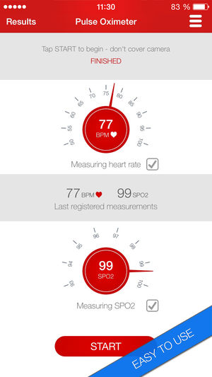 唯一可以用以测量心率和血氧饱和度的应用——您不需要任何外部设备。该应用与苹果HealthKit组件整合到了一起。不适用于临床用途。通过iPhone手机的相机,脉搏血氧计可以从您的指尖来检测脉搏和氧含量。跟踪和记录心跳和血液含氧量。即时结果、操作方便、简单图表,均能保存自己的进度。 无论你是在训练过程中,还是做一些简单的运动,或只是监测血压水平,一切都将变得简单,今天就下载应用,使用您手机的相机闪光灯监测你的健康! 把你的食指指尖放在iPhone手机的摄像头上,几秒钟之后,您的脉搏和氧含量将显示出来。结果也会以图表形式呈现,旋转iPhone手机查看数据表格。 特征: -测量脉搏和心血饱和度…
