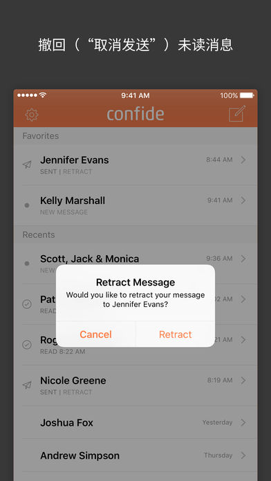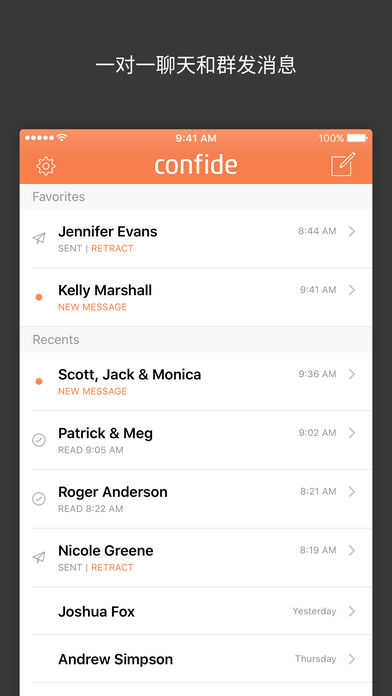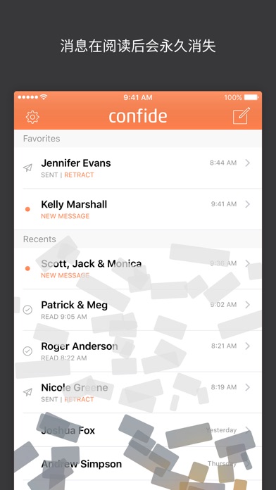 Confide是为您保密的信使。我们将端到端加密技术将即显即关、可防止截图的消息结合在一起,确保您的私人通信始终保持私密。 •消息经过端到端加密 •消息在阅读后会永久消失 •业界领先的防截图技术 •发送文字、照片、视频和文件和语音消息 •一对一聊天和群发消息 •推出移动版、桌面版、iMessage和Siri版 Confide同时提供: Confide Plus - 更多功能,更强控制。 • 无限附件 • 撤回(“取消发送”)未读消息 • 主题 • 优先客户支持 Confide已在180多个国家使用,备受财富杂志、福布斯、彭博社/商业周刊、纽约时报、华尔街日报、华盛顿邮报等推崇。 Confide让您在数字化沟通的过程中能够享受与口头表达同等的隐私和安全性。 下载Confide,重新掌控您的数字化沟通。 ——— 适用于iMessage的Confide允许您完全在iMessage应用中收发Confide消息。完全无缝使用,无需创建账户。由于Apple对iMessage应用施加了技术限制,适用于iMessage的Confide不能提供与主应用相同级别的防截屏技术。 ——— 不同地区的价格可能有所不同。费用将从 iTunes 帐户绑定的信用卡中扣取,付费帐户到期后将自动续订。如需取消续订,可以在当前付费周期结束前24小时进行操作。付费帐户激活后,将无法取消。购买后,可以在帐户设置中管理续订。 ——— 服务条款: https://getconfide.com/terms 隐私政策: https://getconfide.com/privacy