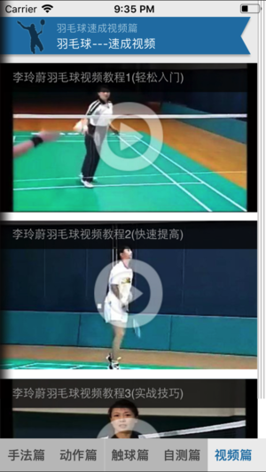 App Store中最据权威的羽毛球宝典。让你可以在短时间内从菜鸟到高手的必备神器。 速成:只要你对羽毛球有一点点兴趣,打开宝典看一看,分分钟让你成为羽毛球界中的“超级丹”! 易学:我不是一本枯燥的羽毛球教科书,用文字来阻碍你的行动,我是一个简简单单按照视频步骤动起来,就一定能够成功的宝典式App! 随时随地:利用你的任何时间,上班公交车,下班挤地铁,什么时候想看了拿出来看看,下次打羽毛球的时候照样做一做,你的朋友或队友就会明显感觉到你的水平在提升。 本App中还有世界羽毛球冠军林丹、李玲蔚等,诸多位羽毛球界明星手把手为您演示,让您深度了解羽毛球的各种打法。