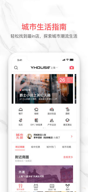【YPASS会员特权联盟,尊享餐厅、酒店、网红店特权】 【3万达人收藏专辑大曝光,看看同城达人的心愿单】 【轻松找到吃喝玩乐好去处,探索城市潮流生活】 【随手get各类生活实用帖,满屏乐趣抵不住】 【高品质生活爱好者聚集地,寻找让你心跳的新朋友】 「YHOUSE」,我们是一款城市精英首选的生活方式APP,在社区呈现高品质的生活方式,提供精品休闲玩乐与创意美食预订。在这里,从周一到周五的创意美食,周六周日的炫酷活动体验,我们提供一站式的本地与目的地出行城市“吃喝玩乐精致生活”预订服务,包括优惠套餐、旅游、酒店、美食、KTV、手工DIY、马术、射箭、跳伞、潜水、米其林、SPA、美容、出境海外游…