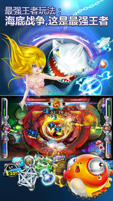 捕鱼英雄之《波塞冬之怒》愤怒升级,新增11种新型大炮,挑惹起强大海战!!! 13种新鱼型投入战斗,花样捕鱼,百变升级!! 8大捕鱼场景带你进入希腊神话的玄幻海战世界! 玩家一VS一正面Battle的基础上,约战最强王者,挑战愤怒海神波塞冬!! 海皇争霸,玩家PK;激血对抗,强强碰撞,赢取无上荣光! >>>激战玩法,让愤怒掀翻海底 ** 玩家Battle模式开启,最强王者·对决,任意选择其他玩家PK,海魂焰火力全开,最强王者等你来战!! ** 延续海神波塞冬神话传说,三叉戟的愤怒降临,8大奇幻场景任你选择! ** 35种鱼型畅游海底,狼鱼,剑鱼,食人鲳……珍奇鱼种搅动海底,掀起巨浪。 ** 23种道具为你准备,奇葩用法冲击底线,玩出更多花样才能冲上王者宝座! ** 释放四种超级能量武器,一招毙命,遇龟杀龟,鱼挡杀鱼! ** 强化系统上线,强化装备,提升战斗实力,捕捉更多怪鱼。 ** 定点参加海皇争霸,惨烈激战后,一战成名万骨枯,看谁能勇夺第一! ** 美人鱼携九宫格抽奖踏浪而来,体验挖宝乐趣,享受未知惊喜。 ** 修炼至尊VIP等级,显赫身份享受至尊特权,高人一等哦! ** 超值运营大礼包从天而降,为各位玩家送出更多福利,赶紧来抢! …… 最新2.2版本,我们增加11种新型大炮,带来意想不到的捕鱼效果,更爽更酷。 新添加13种特殊鱼儿,更多珍奇鱼型出现在海底了哦~ 修复了2.1版本的一些bug,让游戏更完美。 新增功能: ----增加11种大炮,冰冻,毒液,墨汁,闪电……体验各种捕鱼效果。 ----增加13种新鱼,伴随场景解锁新鱼即可出现,更多绚烂多彩的鱼儿等你捕捉! ----场景可直接解锁啦,8种希腊神话场景任你选择! 修改bug: ----修改等级礼包和签到礼包只能领取1张道具卡的bug。 ----修复每日任务统计出错的bug。 ----修复了最强王者对战次数领奖的bug ----修复了游戏过程中出现的一些闪退和崩溃bug 最强王者PK,玩家对战Battle,波塞冬君临7大海域,等你来战!!! 新型大炮,掀起捕鱼风暴! 颤抖吧!大海!