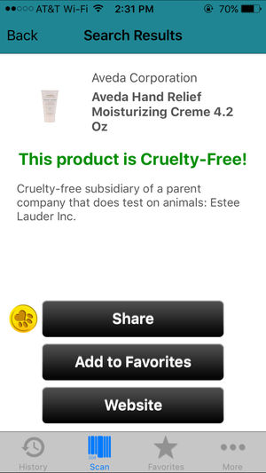 Cruelty-Cutter is cruelty-free shopping made simple! Cast-away any doubts when purchasing items by using this app to scan an item and have an immediate response about it’s animal-testing status. Cruelty-Cutter has every company in the "Leaping Bunny" and PETA lists and thousands more. It is the mo…