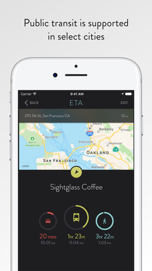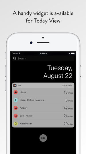 预计到达时间(ETA)是你的私人驾驶助手,可快速为你提供前往常用目的地的行车时间和路线信息。 一个界面即可显示到达目的地的行车时间以及当前交通路况信息*。 轻按一下即可跳转至你常用的导航 app,获知已经计算好的转向驾驶导航。 乘坐公交出行? 没问题,“预计到达时间”可以帮到你。 除了驾车和走路之外,“预计到达时间”还可提供公交出行信息(请前往 http://www.apple.com/ios/feature-availability/#transit 来了解你所在的区域是否可以使用这个功能)。 “预计到达时间”简单易用,可以提供你所需要的城市导航信息。 同时它也是你常用导航工具(Ap…