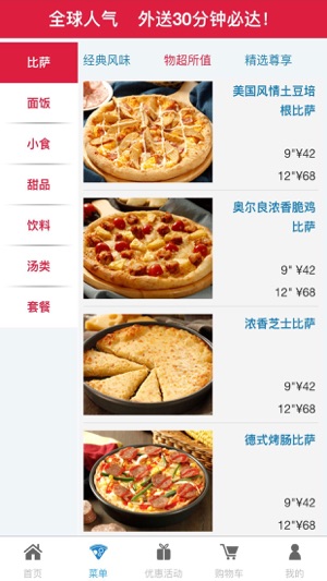 达美乐比萨,源自美国的全球知名比萨外送品牌 这里有最好吃的比萨和丰富的各类小食。 比萨使用纯手工制作的饼底面团,更有韧性,口感更佳! 芝士和比萨酱汁100%来自美国进口,以保证比萨能呈现达美乐全球统一优良品质和口味。 我们只选用品质优良的肉制品和新鲜的蔬菜原料来制作比萨 意大利面,焗饭类,小吃类,鸡翅类,甜点类,丰富的符合中国消费者口味和习惯的小食应有尽有。 达美乐领先美食潮流,各款新品层出不穷。 更多惊喜,尽在达美乐比萨APP