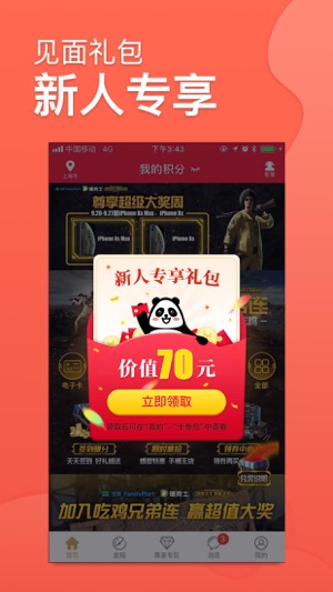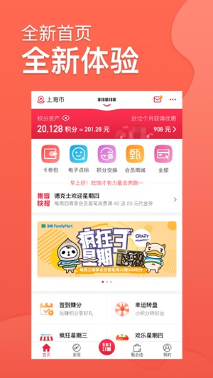 【APP活动推荐】 - 全家疯狂星期三 尊享会员首笔消费满25元,加赠500积分; - 德克士 * 欢乐星期四 * 尊享会员首笔满40送20元代金券,满80元送40元代金券; 集享会员首笔满40送10元代金券,满80送20元代金券; * 卡友日(每月18日)* 尊享会员当日持卡购正价单品+1元可得双份单品或+1元送百倍积分; 集享会员当日持卡购正价单品+1元可得双份单品。 - 康师傅私房 * 卡友日(每月16日) * 尊享会员首笔消费满40元送40(2张20元券)再加赠500积分, 满80送80(4张20元券)再加增1000积分,上不封顶; 集享会员…