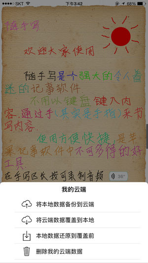 在寻找好用、快速的手写笔记本吗? 随手写 - 让您随手记录想法及感动 [特色] - 原笔迹手写,更快速也更有亲切感。 - 灵活编辑,笔迹容颜随意设置。 - 手写输入直接自动储存,无需手动保存无需辨识选字。 - 在手写区长按,可插入图片或录制音频。 - 设定云同步,保护您的重要笔记。遇到手机损坏或其他状况时,可復原到之前的数据。 - 为你的笔记加密,防止陌生人查看你的笔记。 - 能方便快捷的将笔记分享到微博,微信等主流社交平台。 如果你有任何建议或问题,欢迎联系我们: QQ群: 613095793 联系邮箱: freenote_ws@163.com