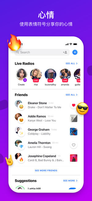 数百万用户正在与Sounds分享音乐!加入全球最大的音乐社交网络! 结朋识友 通过Soulmate Score结识具有相似音乐品味的人。 赚钱 将你的Sounds个人资料链接添加到Instagram个人简介,分享音乐得报酬! 分享音乐 在Sounds和以下社交媒体上与好友分享音乐:Stories、Instagram、Snapchat、Facebook、Twitter、Messenger和iMessage。这就像是Musically与Spotify的联姻 心情 使用表情符号分享你的心情,或是摇动手机告诉好友你在跳舞! 与好友和艺人聊天 免费向你的好友发送音乐,当你喜欢的艺人时发布新歌以…