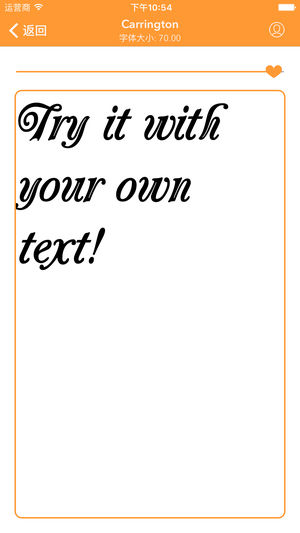 FontMimic Pro是一款字体预览app,提供您超过60种精选的创意英文字体。您可使用此软件来为您的设计对比不同的字体风格,找到最适合您的字体选择。您也可以拿出纸笔来模仿这些有趣的字体,画在笔记、日记、手帐中,为您的书写带来不同的乐趣。每个字体亦贴心包含了作者资讯,方便您拜访设计师们的网站观看其他大作。 简单三步骤帮助您的设计: 1. 选择您喜欢的字体 2. 输入您想要预览的文字 3. 根据需要调整文字大小 *** FontMimic Pro为您移除了恼人的广告,让您在享受字型之美的同时不受任何干扰! *** 谢谢您下载与使用FontMimic Pro,祝您书写愉快!