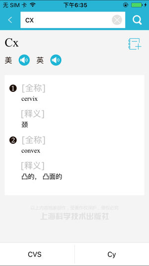 本词典由上海科学技术出版社官方发布,其他同名词典均为盗版。本词典内容跟印刷版《英汉医学辞典》保持一致,它是一部权威、标准、精确、全面的大型医学双语词典,由国家“资深翻译家”荣誉获得者陈维益教授主编。本词典初版于1984年,在医学界享有盛誉,是我国最有影响力的医学英汉词典。本软件由海笛科技提供专业技术支持,具有摄像头查词、语音查词、通知栏快捷查词等便捷查词功能,还有清晰发音、生词收藏和复习背诵等辅助学习功能。选择正版词典,学习更有保障!(版权所有,盗版必究) 词典特色: (1)权威正版:本词典在医学界享有盛誉,是我国最有影响力的医学英汉词典。 (2)全面准确:它是一部权威、标准、精确、全面的大…