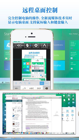 在iPhone和iPad上远程控制Windows和Mac系统! 远程桌面大师是从 iPhone,iPad访问电脑系统最方便的App. 全新支持Windows 10和macOS 10.13 High Sierra系统 独家支持双模远程控制方式,既流媒体远程桌面和VNC远程桌面,您可以选择更高效的流媒体远程控制,或者是不需要再安装电脑客户端的标准VNC连接方式,并支持多电脑平台,包括Windows,Mac,Linux,Unix 让您通过本地网络查看和编辑Word,Excel,PPT文档和PDF文档.用浏览器来浏览网页,玩3D电脑游戏,或者远程文件管理器.把您的电脑放在口袋中! * * * *…