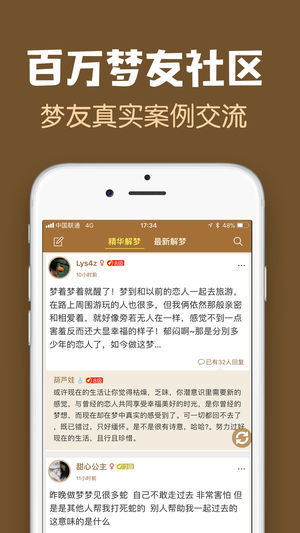 华人世界使用人数最多、最权威的解梦应用; 移动设备端合计超过1000万用户,10万好评; 能解梦、能交友、还能换好礼的才是好应用; 【产品简介】 梦始终是个科学难解之谜,梦友帮您解开它。 梦是东方周公旦“庄生晓梦迷蝴蝶”奇幻式的《周公解梦》那样? 梦是西方弗洛伊德“揭示人类心灵的奥秘”解剖式的《梦的解析》那般? 梦友解梦将东方与西方、文化与科学接合与碰撞给您颠覆性的解梦体验。 【产品特点】 1、专业的搜索功能,如:梦到蛇,梦见怀孕,梦到蛇,梦见死人,梦到拣钱,梦到考试,梦到做爱等,输入关键字便可轻松得到解梦答案; 2、分类检索功能,如:人物类解梦,动物类解梦,植物类解梦,物品类解梦,活动类解…