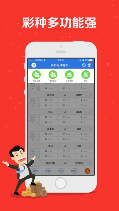 〉新用户:首充10元~20元,充多少送多少 首充1百送30、2百送40…满1千送120 〉老用户:单笔充1000送120(最新活动详见公告) 大数据竞彩预测,中奖率高!投注体彩有保障,3800万竞彩彩民专属 一个专为中国竞彩彩票彩民量身定制的彩票客户端,是最 专业的竞彩彩票服务平台,为移动端彩票用户提供专 业的彩票资讯、数据分析、即时赔率、全国高手红单 研究等彩票服务,安全、优质、高效的移动互联网个 性化彩票服务终端,购买彩票超方便,一键下载随时 买彩票,即时投注博大奖。 功能亮点: ●竞彩投注:竞彩足球彩票,竞彩篮球彩票全部玩法; ●高手汇聚:荐稳胆月入过万,跟高手天天连红; ●同步开奖:即时比分直播,对奖马上知结果; ●正规安全:银联、信用卡、支付宝,方便充值; 官方微信公众号:lotterynews 官方承诺:正规有效,保障权益