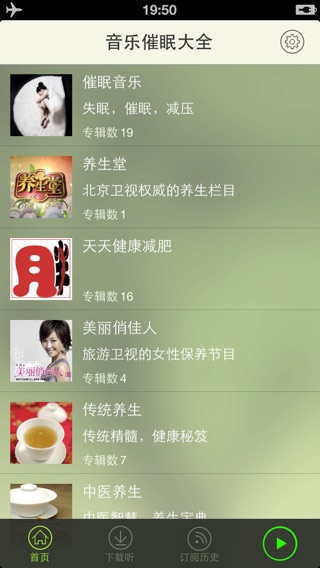 - 睡前聆听,帮助快速催眠、深度睡眠,有效提高睡眠质量; - 纯自然声音,专业音乐、纯乐器演奏,使你快速进入梦乡; - 自我放松、不疲劳、不数羊,第二天神清气爽、精神百倍! - 坚持使用可有效的改善睡眠状况,直至彻底摆脱睡眠障碍! - 独特的“伴你入睡”功能,定时关闭,功能实用! 失眠音乐疗法,不是随便躺在床上听听音乐就可以收到非凡的效果的,其正确的操作程序很关键。那么,失眠音乐疗法应该怎么做呢? 专家表示,通常情况下,失眠音乐疗法的具体做法如下: 一、在进行失眠音乐疗法前,失眠者要躺在干净、舒适、无干扰的床上,先采取最喜欢的卧姿,使用耳机有助于取得最佳效果。 二、睡眠诱导:失眠者仰卧,四肢平伸,放松身心。正常呼吸10次后,双眼向额部方向注视,凝视一点不动,持续做深呼吸,吸—呼—吸—呼……(持续一分钟以上)。然后闭目,按头、颈、胸、腹、四肢、手脚部位的次序,在心里念出部位名称和“松”字。念身体部位名称时作深吸气,在念“松”字时,放松所指出的部位并缓缓呼气,根据念的速度进行吸气和呼气。 三、音乐选择:在进行失眠音乐疗法时,不同的乐曲具有不同的改善睡眠的作用,事先应做好选择。可以根据自己的实际情况选择《大自然音乐幽静系列》或者节奏舒缓的《床头抒情轻音乐》。听音乐的时间不宜太长,一般在30~60分钟以内,也不宜单用一曲,以免重复而令人生厌,可选用一组在情调、节奏、旋律等方面和谐的多支乐曲或歌曲。音量不宜过大,应在70~45分贝左右。 重度失眠人士还可以试听一下由著名心理学专家,佛学专家,催眠大师廖阅鹏制作的《催眠圣经》。廖阅鹏的催眠圣经将灵修的核心“保持觉知”融入催眠理论,将“廖氏催眠”与现代心理学、东方修行体系巧妙地衔接成一个整体,在众多催眠流派中独领风骚。 睡眠,在生活节奏越来越快的今天,日益成为现代人的“奢侈品”。美国一份医学报告指出,现代人工作繁忙,加上夜生活多姿多彩平均睡眠时间比90年前的人少了一个半小时。 失眠的主要表现为难以入睡、爱做噩梦、多醒及早醒。这使得患者即使在入眠时间里,仍难以进入深层睡眠得到充分休息。长期的睡眠不足、可以带来一系列的肌体损害,包括精神无法集中、思考能力减退、警觉力与判断力下降、免疫功能低下、内分泌紊乱等。 非药物治疗失眠已引起人们的重视,音乐疗法就是其中一种。音乐可以帮助有效调节情绪,听听专业的心灵美疗音乐就能拥有好心情。 《音乐催眠大全》是由资深催眠专家精心挑选的有助睡眠的音乐,并为您量身打造了失眠音乐疗法,长期失眠和神经衰弱者在使用此疗法后睡眠质量都有显著的改善。