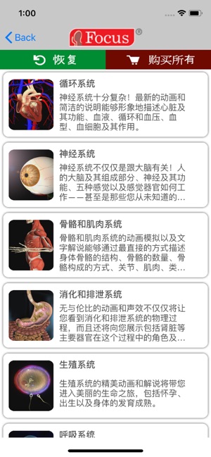 Atlas初级人体解剖和生理动画通过视频动画演示人体结构。加入我们神奇的旅行,探索各种人体系统:骨骼和肌肉系统、神经系统、循环系统、呼吸系统、消化和排泄系统以及生殖系统。熟悉重要人体器官及其位置功能: - 获取最精确的健康和医疗信息 - 通过精确的、高质量的视频动画进行虚拟人体演示 - 提供人体及其系统的清晰动画演示 - 通过对复杂医学概念的简要讲解增进医学知识 - 使用音频及视觉技术等先进媒体增进医学知识 - 由国际知名医疗专家合作开发 适用年龄: Atlas人体解剖和生理动画视频 注意:免费的应用程序仅提供预览. 应用程序包括: - Atlas人体解剖和生理动画视频 - 清晰的…