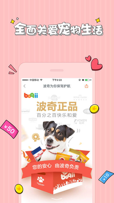 【宠物用品 网上商城】 波奇宠物是一款专为宠物主人满足养宠需求的宠物用品网购商城,宠物商城为猫猫、狗狗、小宠、水族爬虫提供了宠物必备用品,包含猫粮、狗粮、宠物零食、宠物衣服、宠物保健、宠物玩具、宠物牵引、宠物美容、宠物服饰、宠物香波等,万种宠物用品一站式购物,全面关心爱宠物生活。并开辟宠物用品全球购,海关监督,开通欧洲馆、亚洲馆、美加馆,24小时内发货,为养宠用户提供优质的网购体验。 【宠物生活 服务平台】 波奇宠物为宠物主人提供快捷便利的宠物服务平台,目前已与22个城市2000多家宠物店合作,涵盖宠物洗澡、宠物造型、宠物寄养、宠物绝育、宠物医疗、宠物摄影等众多领域。关爱宠物,信誉至上”波奇宠物服务将继续坚持以“价格、信誉、服务”为中心的发展战略,立志将服务、诚信和消费者价值做到极致。 【宠物主题 养宠圈子】 波奇宠物圈子汇集了全国养宠达人在此分享他们的养宠经验和故事;养宠知识在线问答为爱宠疾病预防措施,同时为您提供最详细最科学的治疗方法;宠物个人档案中心随时随地可查看爱宠信息及健康状况;分享你和爱宠物之间的小故事成为你专属养宠日记;定期开启线上活动赢取养宠大礼包,全国各大城市不定期开启线下宠友交流聚会,波奇宠物百科知识从介绍宠物种类、日常饲养、宠物护理、宠物训练、宠物美容等,让您轻松探秘宠物们的世界。 【联系我们 意见反馈】 官方网站:www.boqii.com 新浪微博:波奇网 微信公众账号:波奇网(boqiiwang) 客服电话:400-820-6098