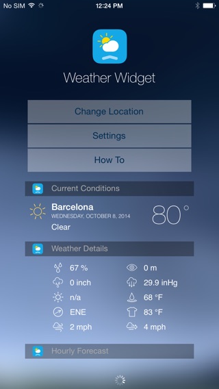 The best and most complete Weather Widget available! — CONTAINS 4 ADVANCED WEATHER WIDGETS! — Weather Widget provides you a quick and detailed weather forecasts for all cities worldwide, right in your Notification Center, just one swipe away from wherever you are in your device! Features: - This app contains four (4) beautifully crafted weather widgets and therefore suits you when you want a quick glance of the weather, but also when you need all the detailed weather info and forecasts. - World Wide weather forecasts. Weather Widget comes with an app in which you can manage the location being displayed in the widgets, temperature unit and other advanced settings. - Detailed Weather Information about your location. This information contains for example: humidity, pressure, precipitation, visibility, dew point, UV, detailed wind info and wind chill. - Detailed hourly forecast. Know the exact temperature and forecast weather details of the next 12 hours! - 5 day weather forecast. Weather Widgets also contains a widget presenting you the forecasted predictions of the next 5 days, accompanied with temperature details, weather conditions and wind info. - Switch between Fahrenheit & Celsius, Miles & Kilometres and all other units. Install Weather Widget now and from now on you only need to swipe down to open the Notification Center to have all the weather infer on your fingertips! Easy as that!